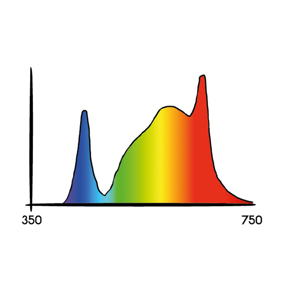 Die Bloom Cosmorrow LED, auch Full Spectrum Light genannt, ist für Blüte und Fruchtbildung mit einem roten Peak bei 660 nm konzipiert. Der blaue Peak bei 440nm eignet die LED auch zum Schneiden und Wuchs. Der Hersteller empfiehlt die Lampe in einem Abstand von 15 bis 35cm von der Pflanze zu positionieren.