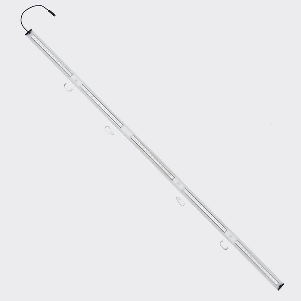 Eingesetzt in Multilayersystemen bewirkt die SANlight FLEX II eine breite und homogene Abstrahlcharakteristik und eine perfekte Lichtverteilung, auch bei geringeren Abständen zwischen Lichtquelle und Pflanzenspitze. Zusätzlich reduziert die kleine Bauhöhe den Platzbedarf der einzelnen Etagen. Um die Installation auch bei größeren Systemen einfach zu halten, können mehrere Leuchten über einen gemeinsamen LED-Treiber versorgt werden. Die Leuchten können mit dem erhältlichen Verbindungskabel direkt miteinander werkzeuglos verbunden werden. Die Montagelasche kann zur komfortablen Montage auch verschoben werden.