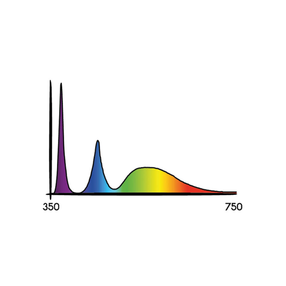 Die UV Cosmorrow LED besteht aus 33% nahem Ultraviolett (365 nm) und 66% 6500K LED (kaltweiß). Es ist für den Anbau konzipiert, bekämpft Schimmelbildung und verbessert das Immunsystem der Pflanzen. UV-Licht kann Pflanzen schädigen, wenn sie ihm längere Zeit ausgesetzt sind.