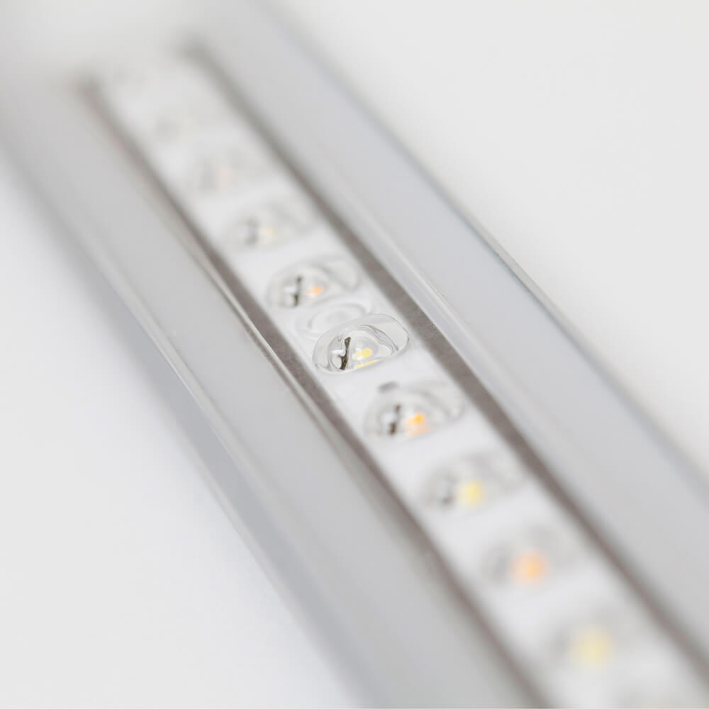 Eingesetzt in Multilayersystemen bewirkt die SANlight FLEX II eine breite und homogene Abstrahlcharakteristik und eine perfekte Lichtverteilung, auch bei geringeren Abständen zwischen Lichtquelle und Pflanzenspitze. Zusätzlich reduziert die kleine Bauhöhe den Platzbedarf der einzelnen Etagen. Um die Installation auch bei größeren Systemen einfach zu halten, können mehrere Leuchten über einen gemeinsamen LED-Treiber versorgt werden. Die Leuchten können mit dem erhältlichen Verbindungskabel direkt miteinander werkzeuglos verbunden werden. Die Montagelasche kann zur komfortablen Montage auch verschoben werden.